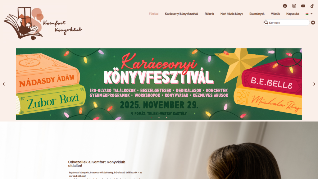 A cél egy letisztult, hívogató weboldal kialakítása volt, amely bemutatja a Komfort Könyvklub közösségét és ajánlásait. Az oldal az olvasás szeretetére és a közös élményekre épít, miközben átláthatóan mutatja be a klub kezdeményezéseit és friss tartalmait.