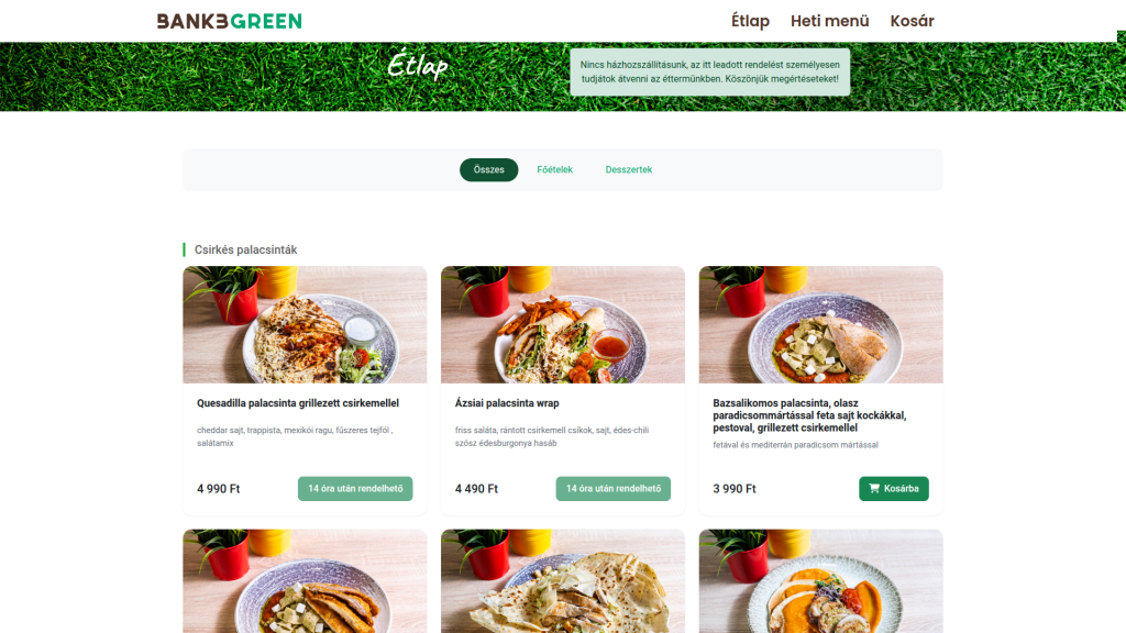A Bank3 palacsintázó online rendelési felületének célja egy kényelmes, mobilbarát rendszer kialakítása volt, amely közvetlenül kapcsolódik a Novohost éttermi rendszerhez. Az oldal valós idejű rendeléskezelést biztosít, így a vendégek néhány kattintással leadhatják rendelésüket, a háttérben pedig automatikusan frissülnek az éttermi adatok.